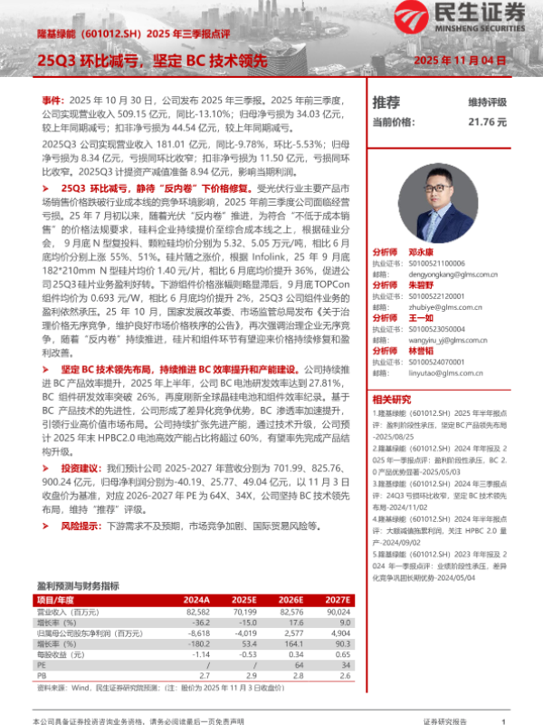 【民生证券】【202511】2025年三季报点评:25Q3环比减亏,坚定BC技术领先-3页