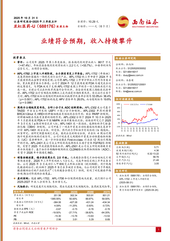 【西南证券】【202510】亚虹医药-U(688176):业绩符合预期,收入持续攀升-6页