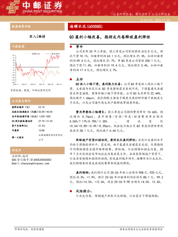 【中邮证券】【202511】Q3盈利小幅改善,期待反内卷释放盈利弹性-5页