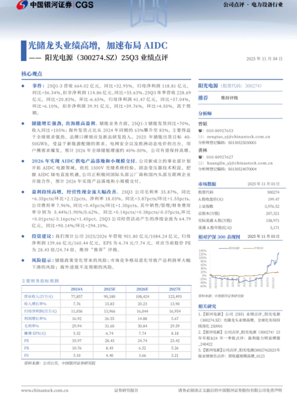 【银河证券】【202511】光储龙头业绩高增,加速布局AIDC阳光电源(300274.SZ)25Q3业绩点评-3页