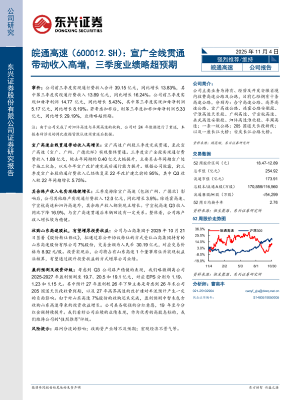 【东兴证券】【202511】皖通高速(600012.SH):宣广全线贯通带动收入高增,三季度业绩略超预期-6页