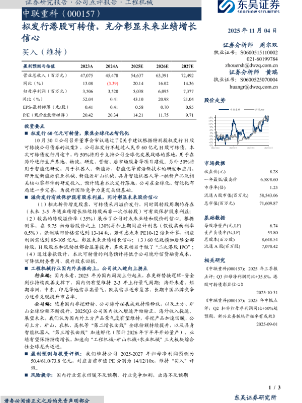 可转债 智能化 全球化 工程机械 盈利预测