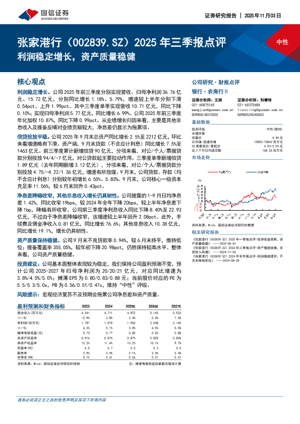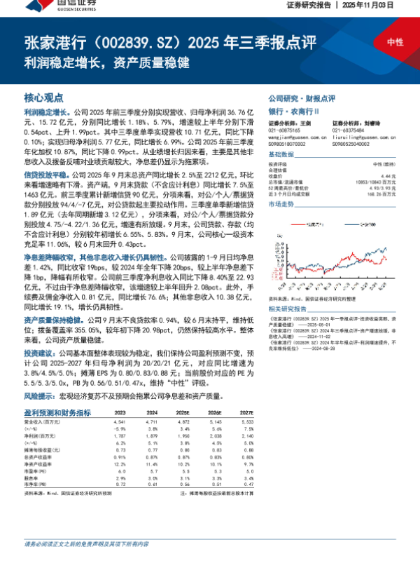 【国信证券】【202511】2025年三季报点评:利润稳定增长,资产质量稳健-4页