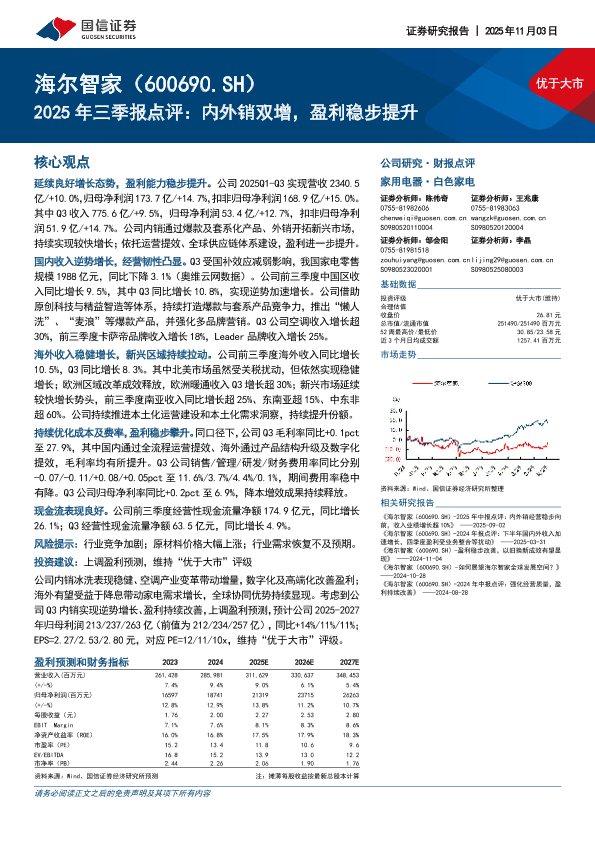 【国信证券】【202511】2025年三季报点评:内外销双增,盈利稳步提升-6页