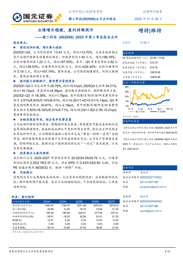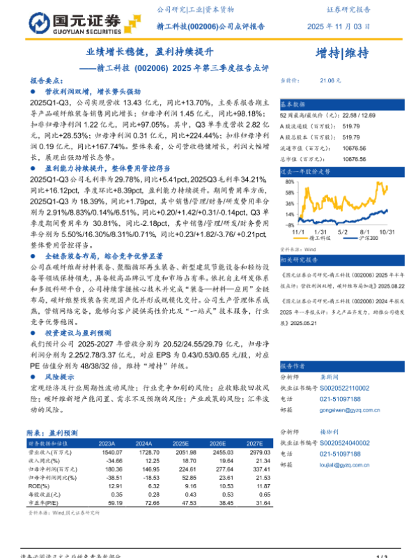 【国元证券】【202511】业绩增长稳健,盈利持续提升——精工科技(002006) 2025年第三季度报告点评-3页