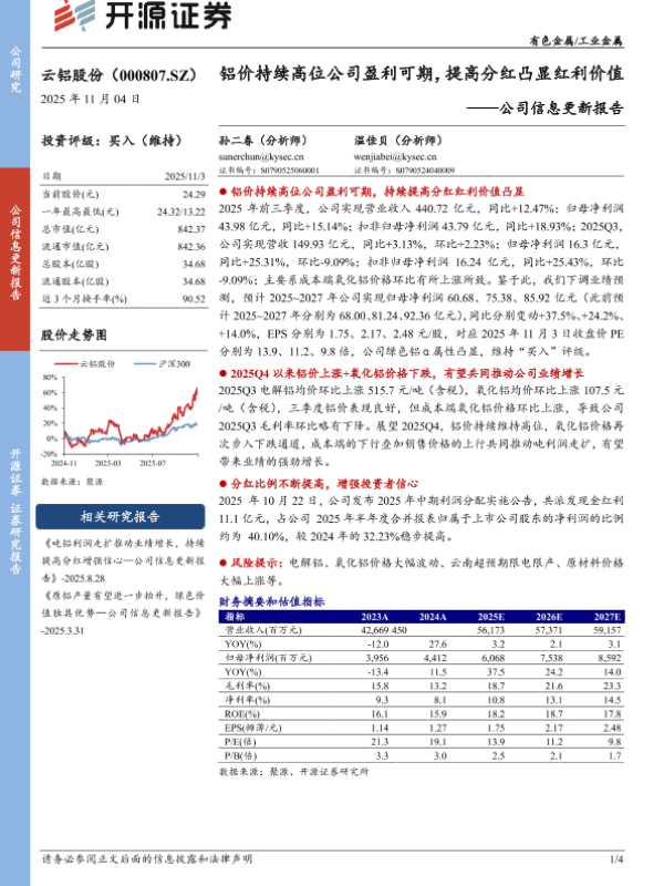 【开源证券】【202511】铝价持续高位公司盈利可期,提高分红凸显红利价值-4页