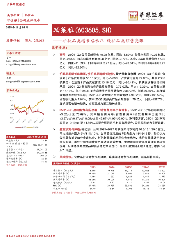 【华源证券】【202511】珀莱雅(603605.SH)——护肤品类增长略承压洗护品类销售亮眼-3页