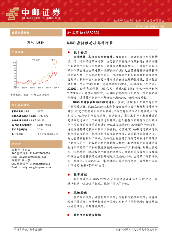 硅部件 国产化 投资评级 半导体 NAND存储