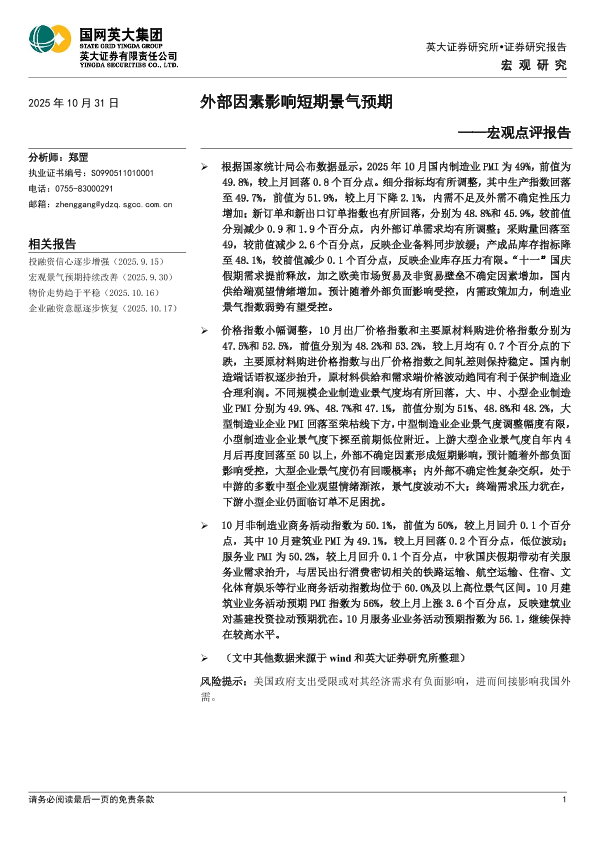 【英大证券】【202510】外部因素影响短期景气预期——宏观点评报告-4页