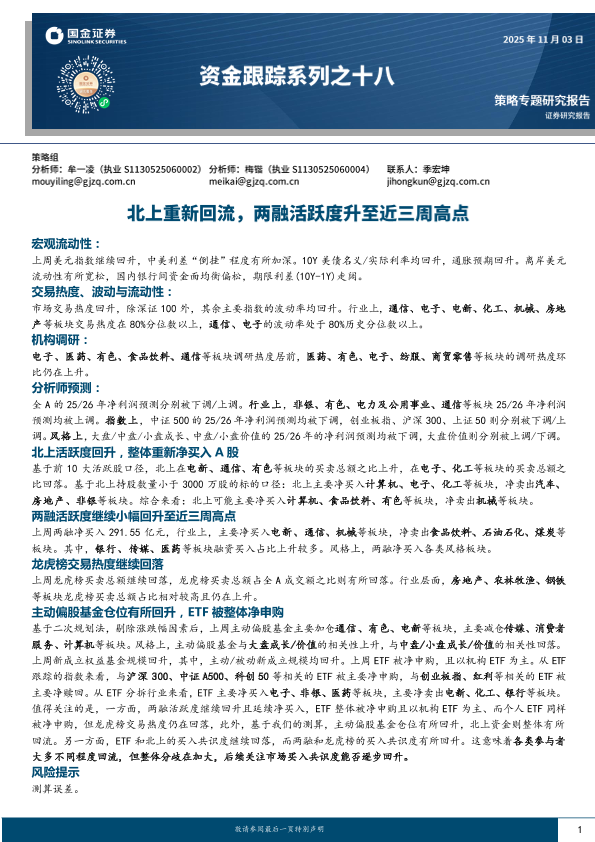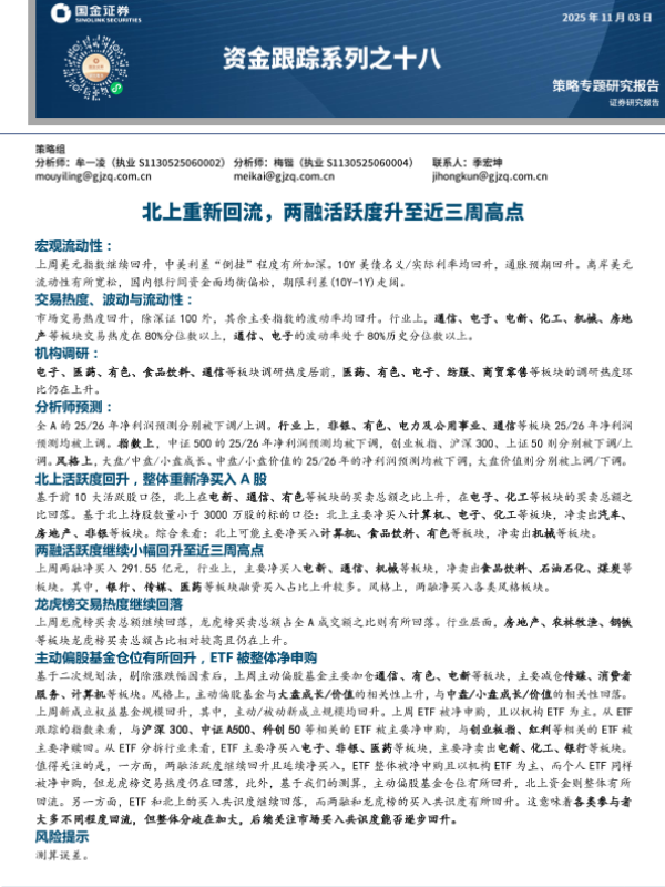 【国金证券】【202510】资金跟踪系列之十八:北上重新回流,两融活跃度升至近三周高点-32页