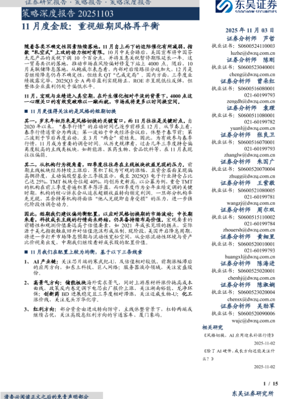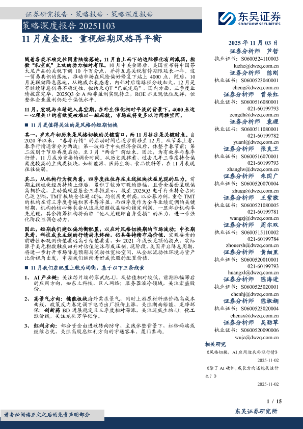 【东吴证券】【202511】策略深度报告 20251103 11月度金股:重视短期风格再平衡-15页