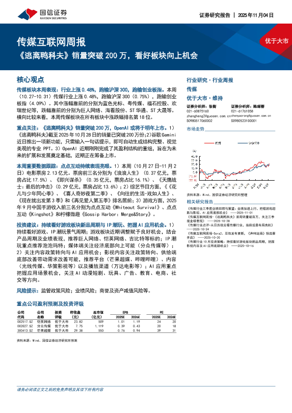 【国信证券】【202511】2025年11月04日 传媒互联网周报:《逃离鸭科夫》销量突破200万,看好板块向上机会-13页