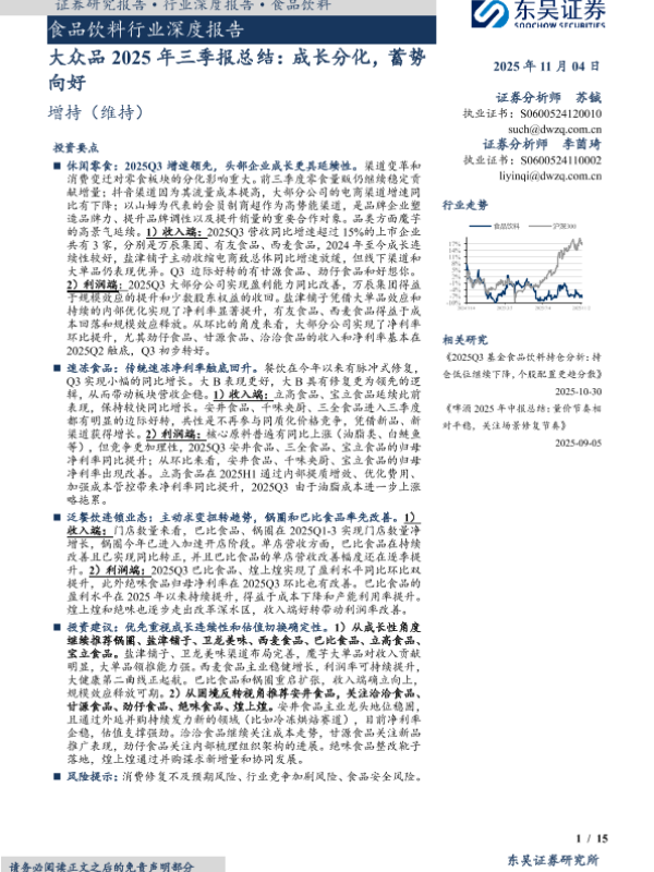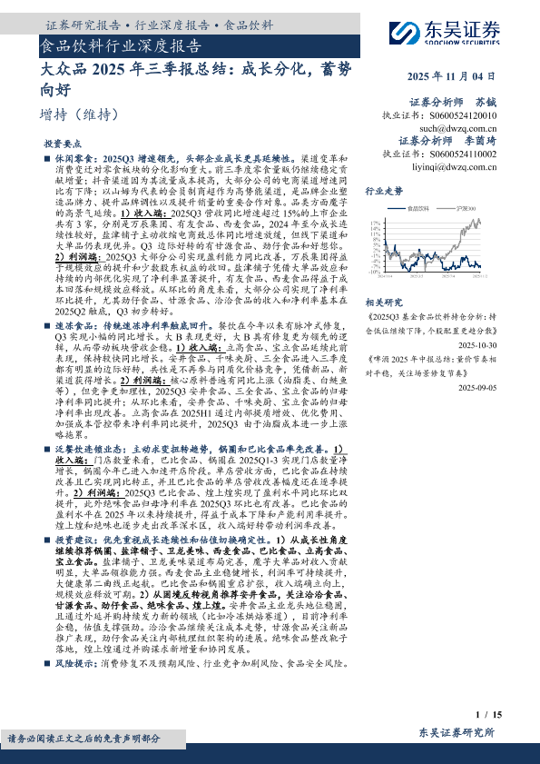 【东吴证券】【202511】大众品2025年三季报总结:成长分化,蓄势向好-15页