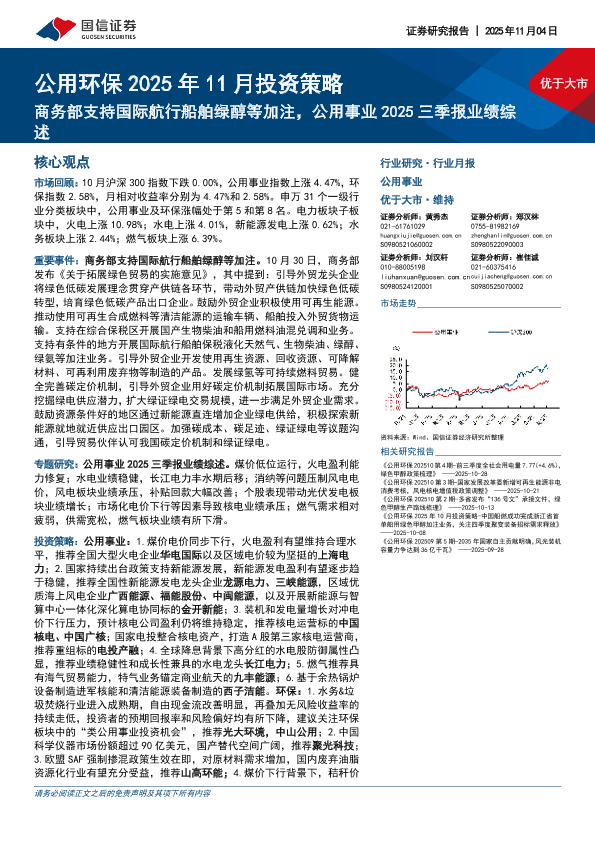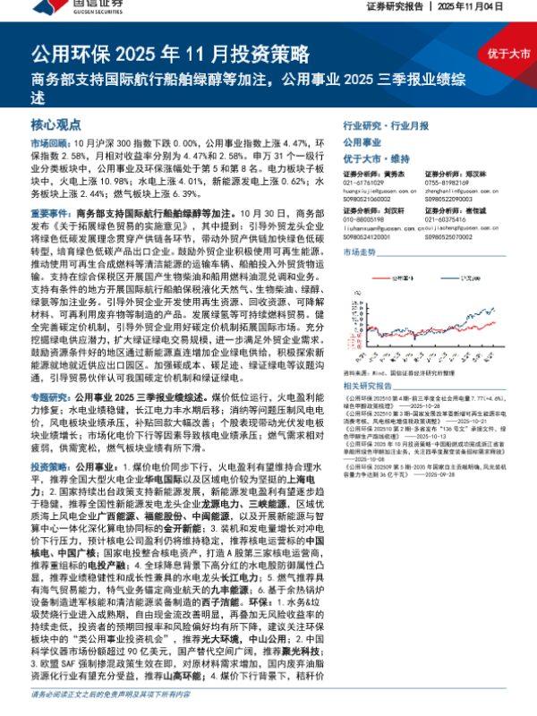【国信证券】【202511】公用环保2025年11月投资策略:商务部支持国际航行船舶绿醇等加注,公用事业2025三季报业绩综述-35页