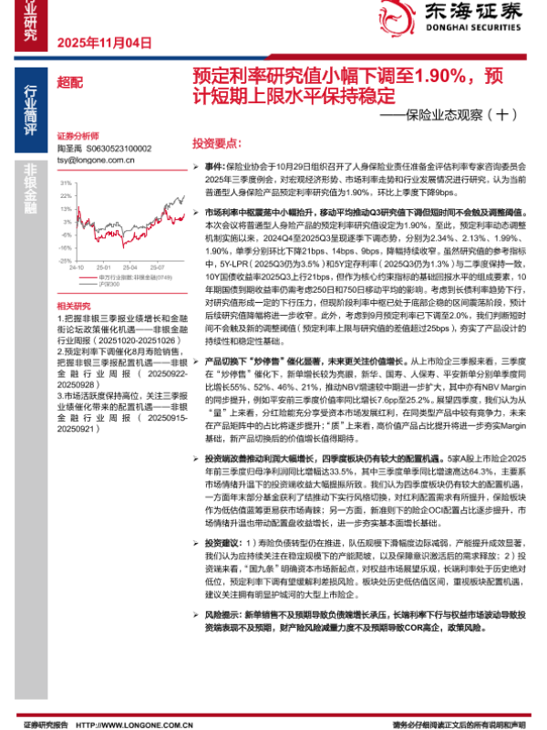 【东海证券】【202511】预定利率研究值小幅下调至1.90%,预计短期上限水平保持稳定-3页