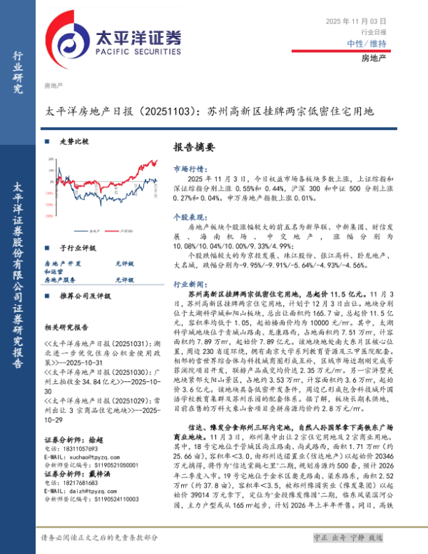 【太平洋证券】【202511】太平洋房地产日报(20251103):苏州高新区挂牌两宗低密住宅用地-4页