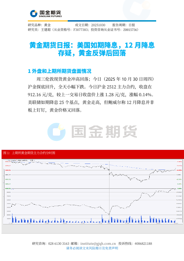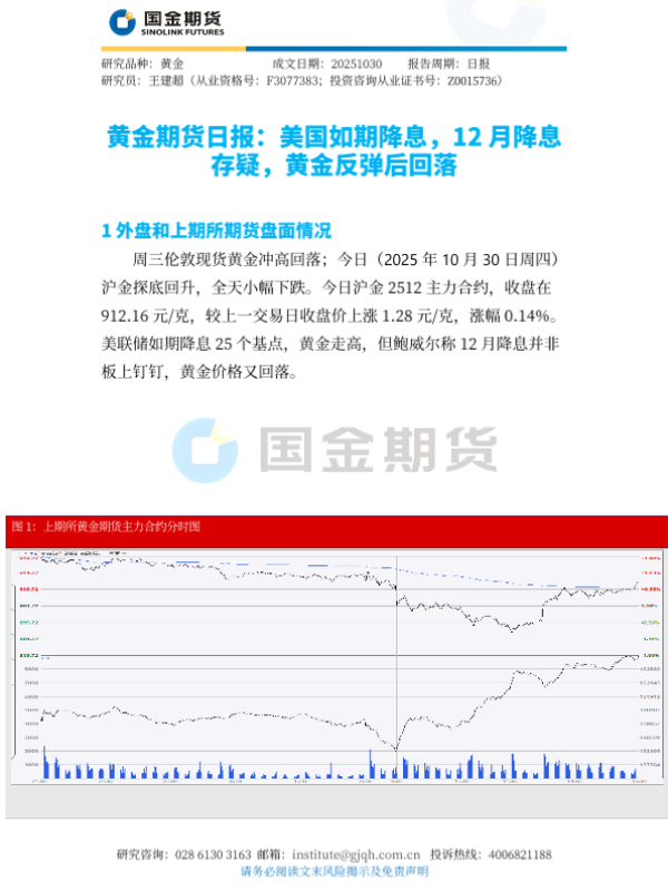 【国金期货】【202510】黄金期货日报 美国如期降息,12月降息存疑,黄金反弹后回落-4页