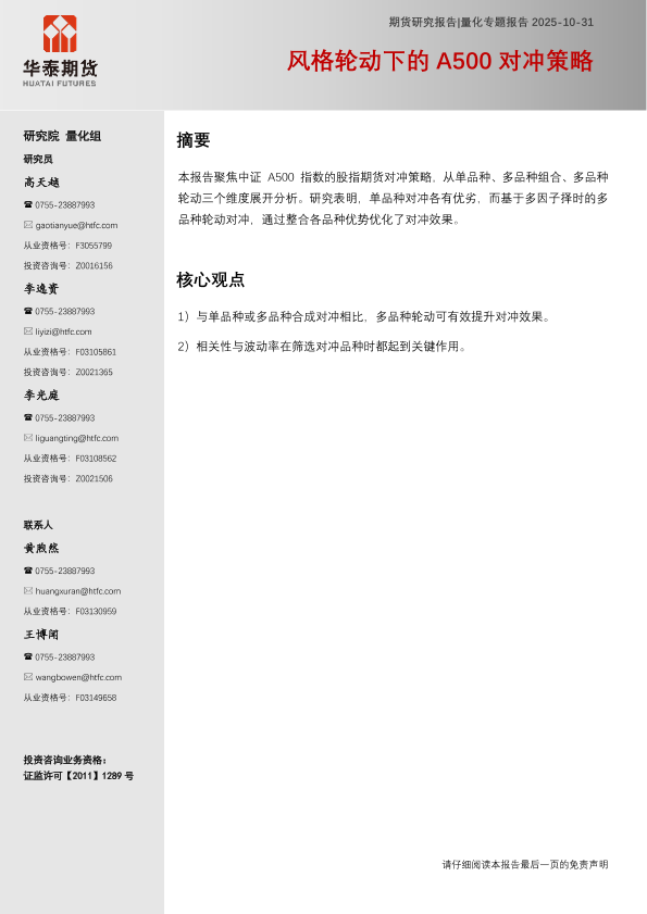 【华泰期货】【202510】风格轮动下的A500对冲策略-11页