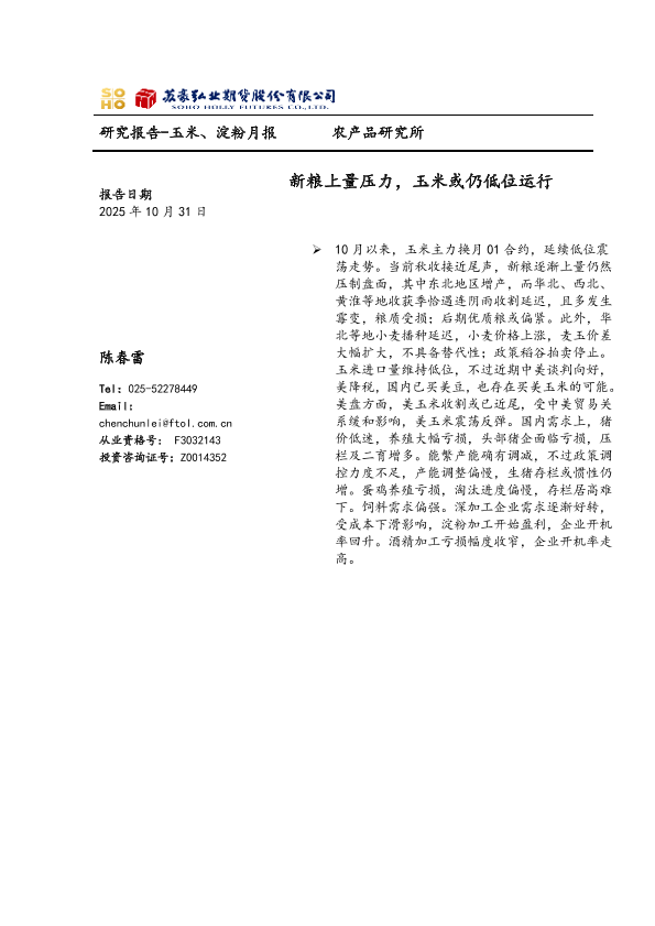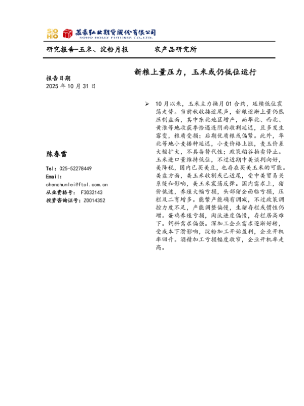 【农产品研究所】【202510】玉米、淀粉月报 新粮上量压力,玉米或仍低位运行-12页