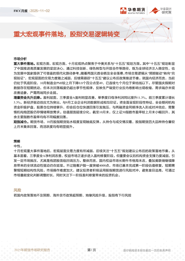 【华泰期货】【202511】FICC月报 | 重大宏观事件落地 股指交易逻辑转变-11页