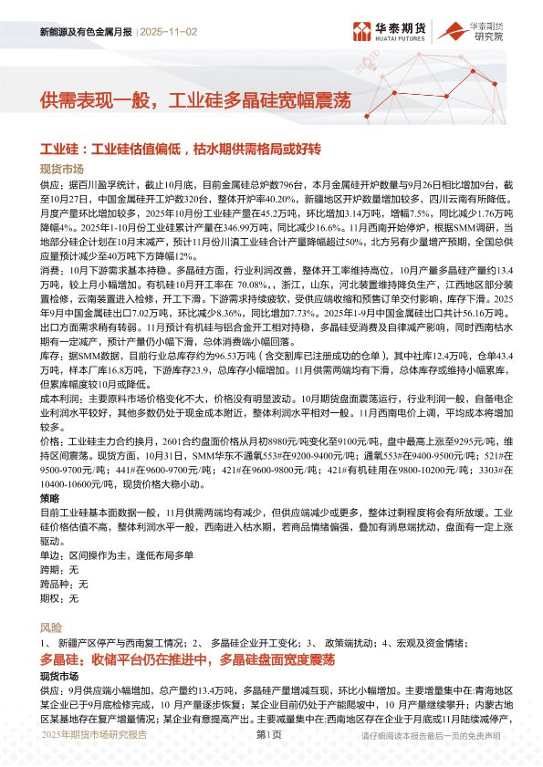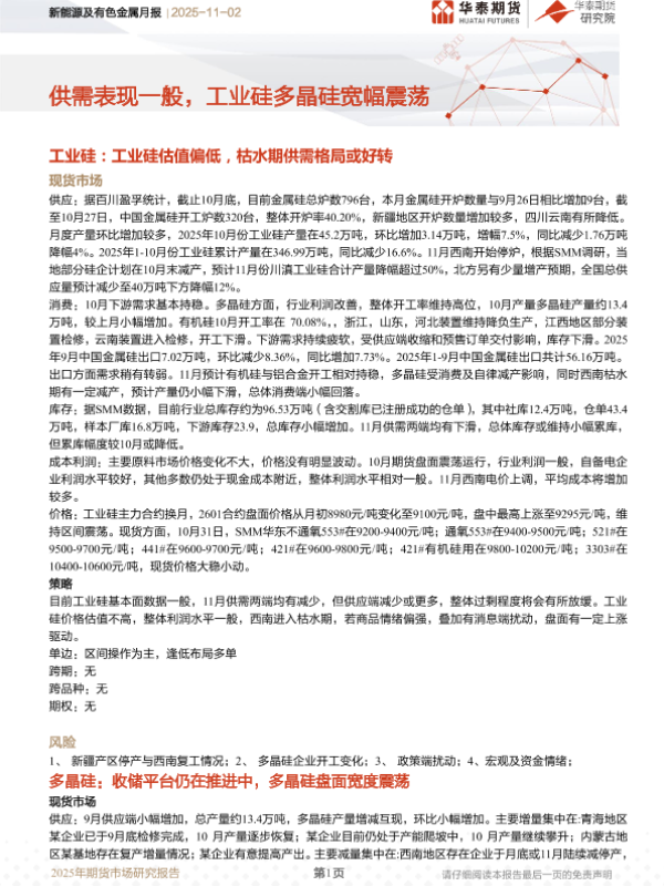 【华泰期货】【202511】新能源及有色金属月报 | 工业硅多晶硅宽幅震荡-14页