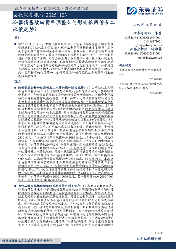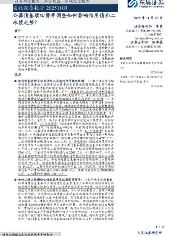 【东吴证券】【202511】公募债基赎回费率调整如何影响信用债和二永债走势?-17页