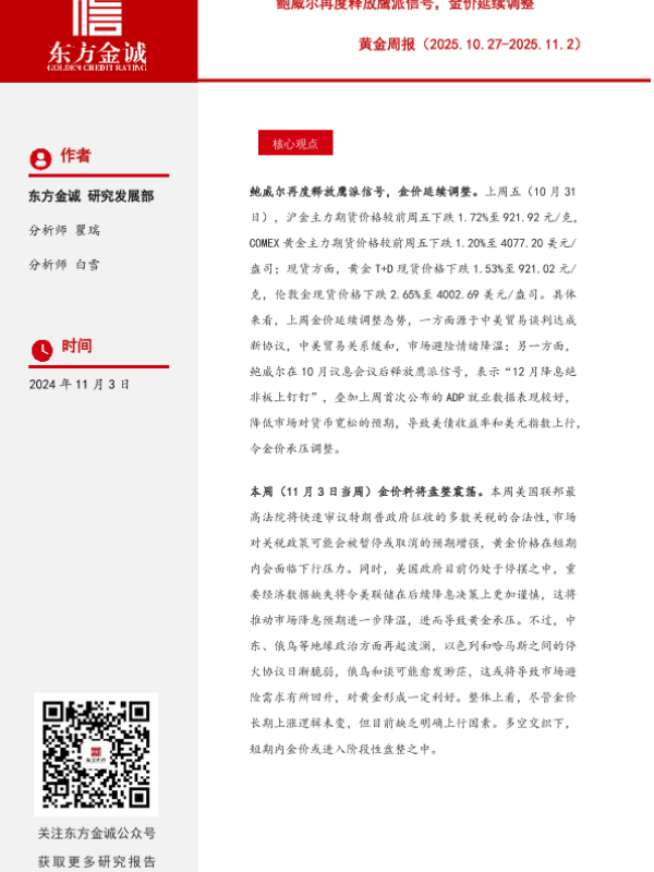 【东方金诚】【202511】鲍威尔再度释放鹰派信号,金价延续调整-11页