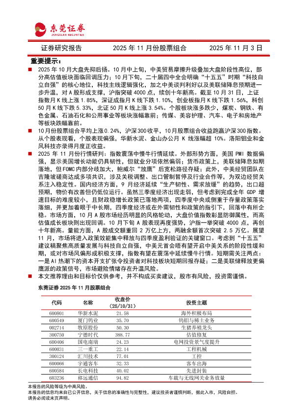 【东莞证券】【202511】2025年11月份股票组合-16页