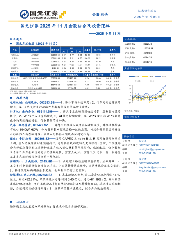 【国元证券】【202511】2025年11月金股组合及投资逻辑-7页