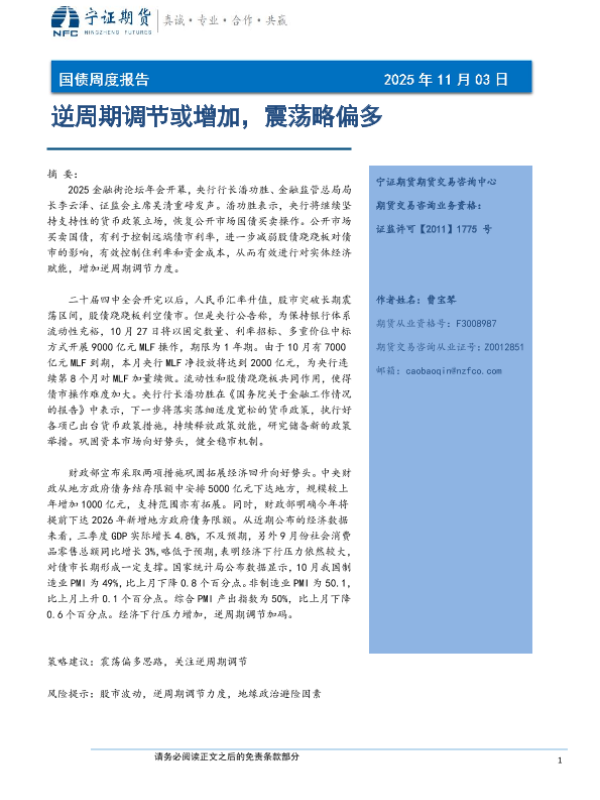 国债期货 债市分析 货币政策 经济数据 逆周期调节