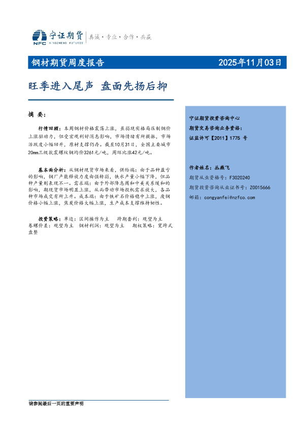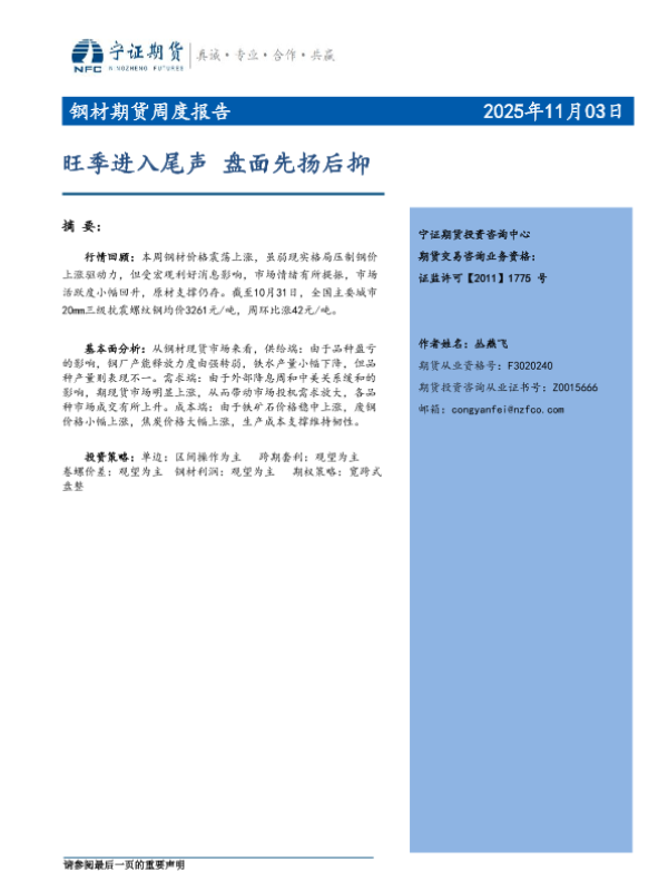 【宁证期货有限责任公司】【202511】旺季进入尾声盘面先扬后抑-7页
