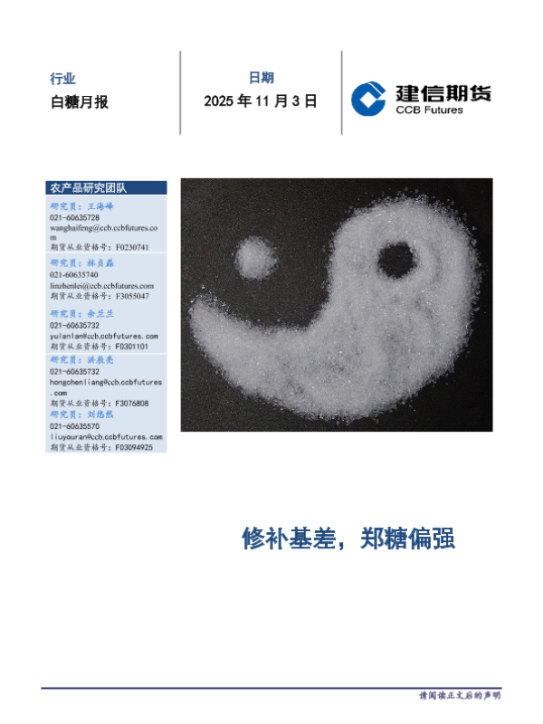 【建信期货研究发展部】【202511】白糖月报_修补基差_郑糖偏强-13页
