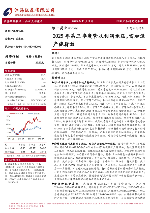 【江海证券】【202511】2025年第三季度营收利润承压_需加速产能释放-5页