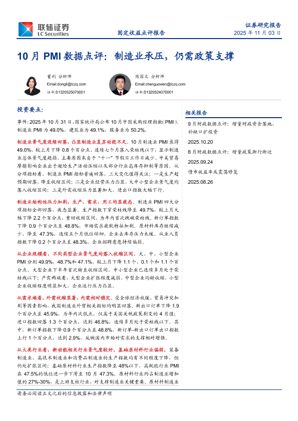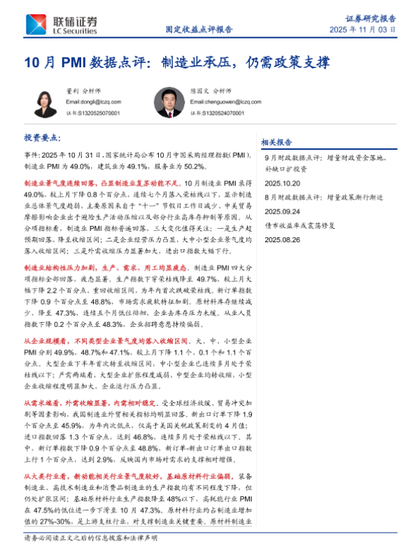 【联储证券】【202511】10月 PMI数据点评:制造业承压,仍需政策支撑-6页