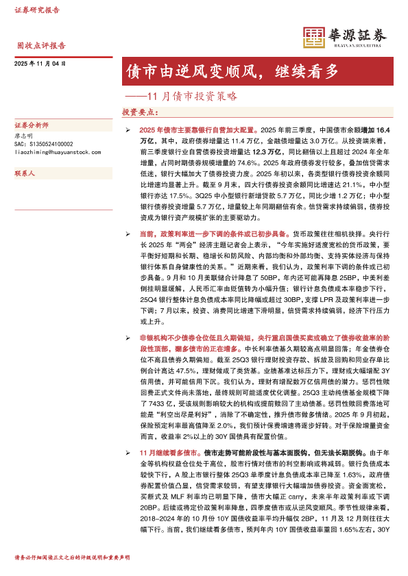 【华源证券】【202511】债市由逆风变顺风,继续看多——11月债市投资策略-6页