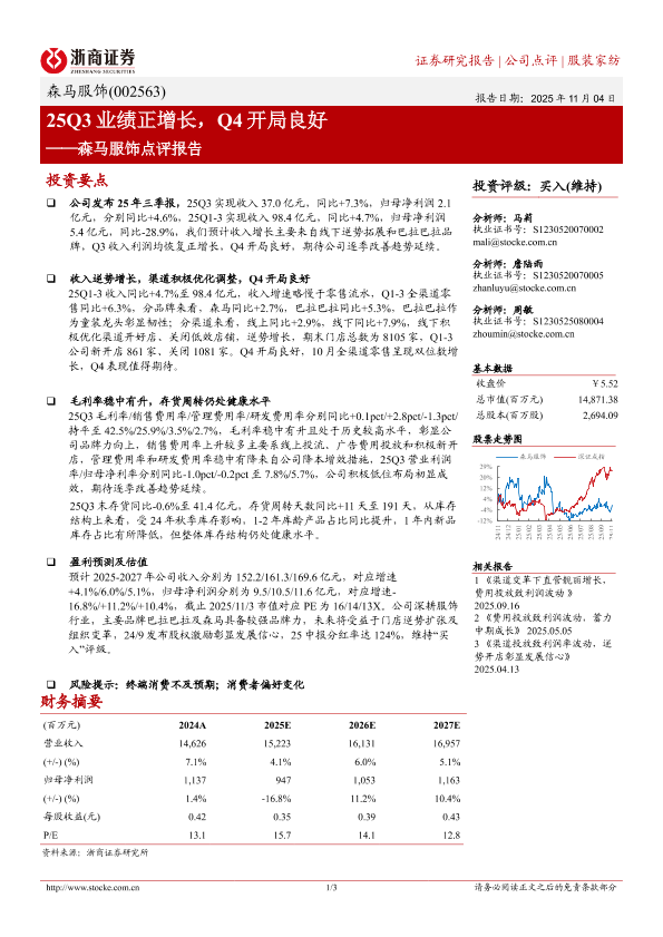 【浙商证券】【202511】25Q3业绩正增长,Q4开局良好——森马服饰点评报告-3页