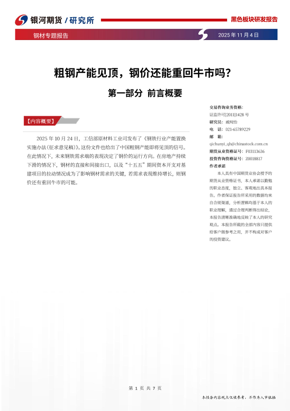 【银河期货】【202511】粗钢产能见顶,钢价还能重回牛市吗?-7页