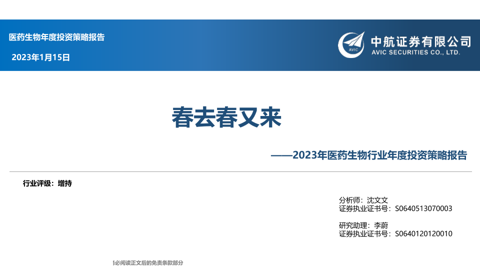 【中航证券】【20230115】2023年医药生物行业年度投资策略报告:春去春又来-72页