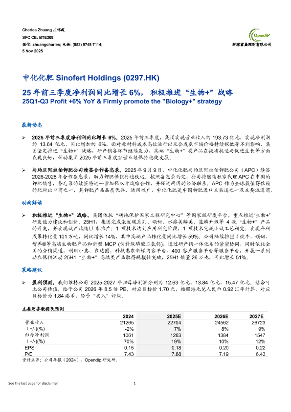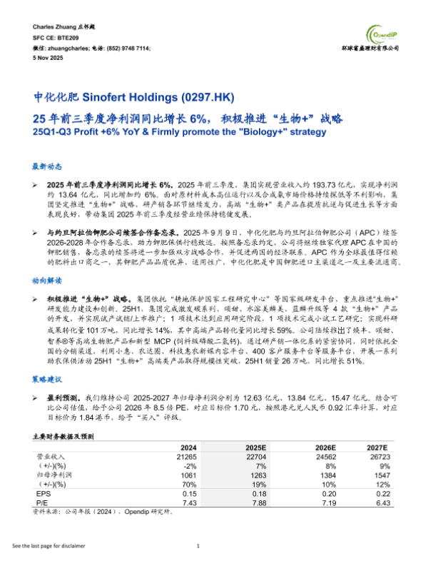 【环球富盛理财有限公司】【2025】25年前三季度净利润同比增长6%,积极推进“生物+”战略-6页