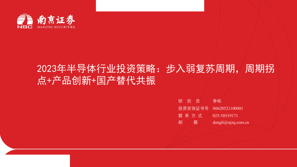 【南京证券】【20230117】2023年半导体行业投资策略:步入弱复苏周期,周期拐点+产品创新+国产替代共振-33页