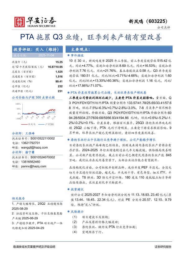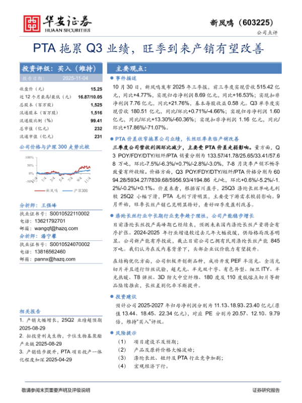 【华安证券】【2025】PTA拖累Q3业绩,旺季到来产销有望改善-4页