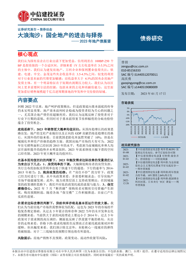 【中信建投证券】【20230117】2023年地产债展望:大浪淘沙,国企地产的进击与择券-15页