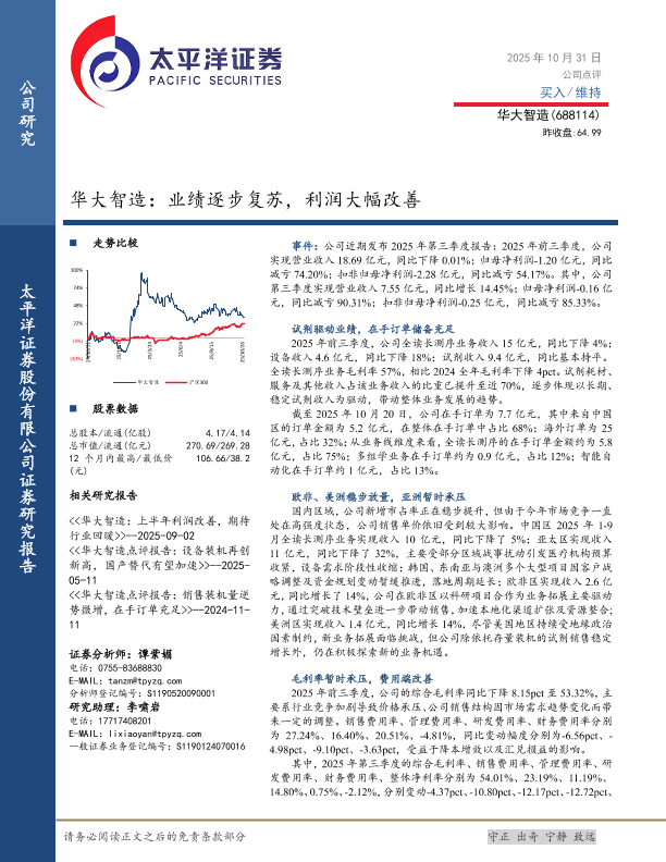【太平洋证券】【202510】华大智造:业绩逐步复苏,利润大幅改善-5页