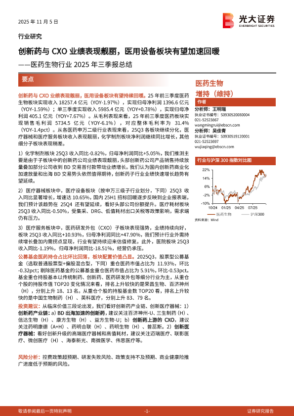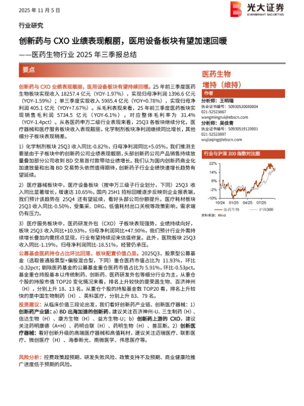 【光大证券】【202511】医药生物行业2025年三季报总结:创新药与CXO业绩表现靓丽,医用设备板块有望加速回暖-6页