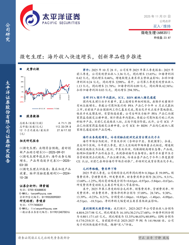 【太平洋证券】【202511】微电生理:海外收入快速增长,创新单品稳步推进-5页