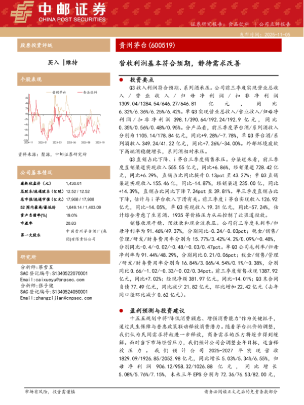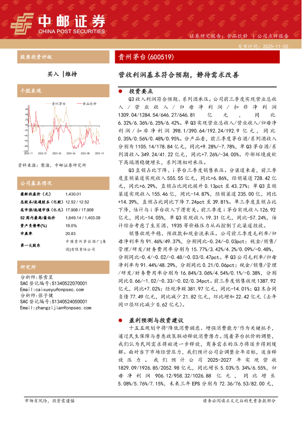 投资评级 食品饮料 贵州茅台 行业分析 盈利预测