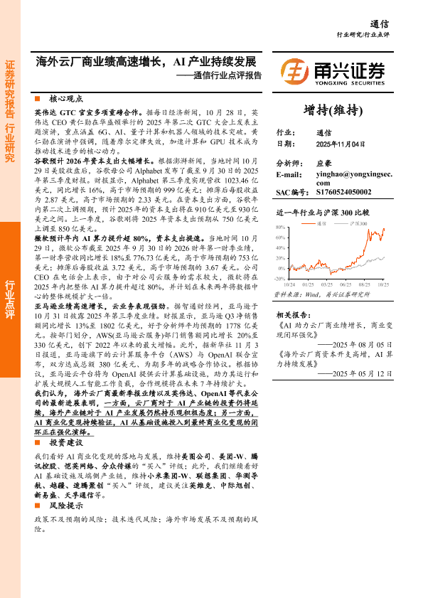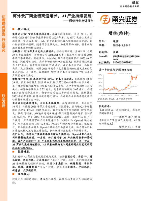 【甬兴证券】【202511】海外云厂商业绩高速增长,AI产业持续发展-3页