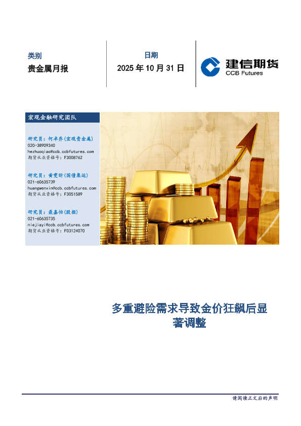 【建信期货研究发展部】【202510】贵金属月报_多重避险需求导致金价狂飙后显著调整-14页