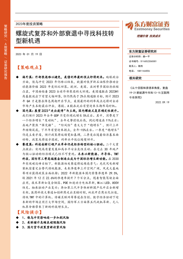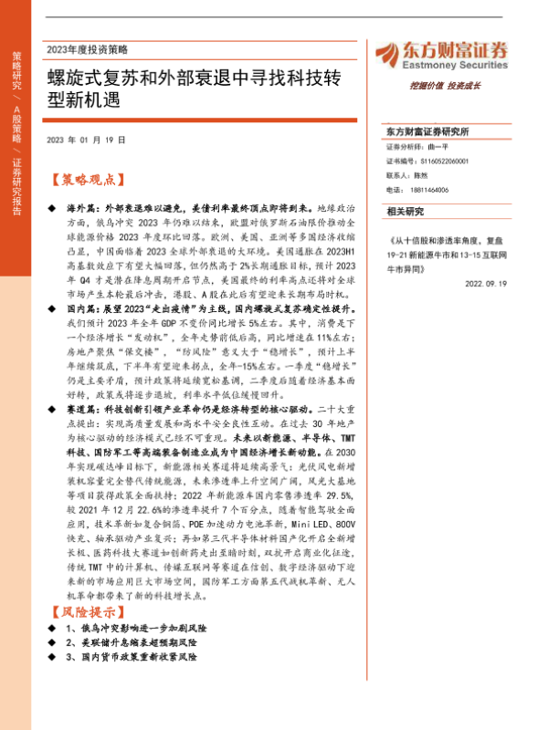 【东方财富证券】【20230119】2023年度投资策略:螺旋式复苏和外部衰退中寻找科技转型新机遇-211页