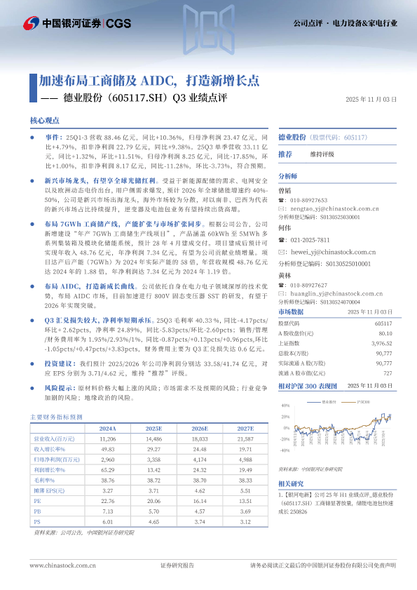 【银河证券】【202511】加速布局工商储及AIDC,打造新增长点——德业股份(605117.SH)Q3业绩点评-3页